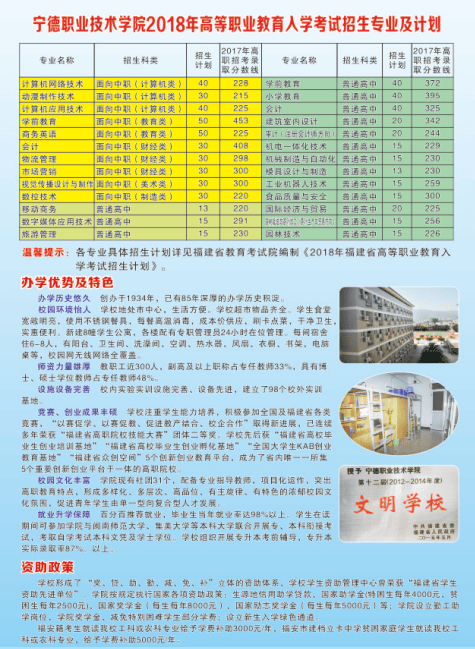 宁德职业技术学院2018年高职招考招生简章